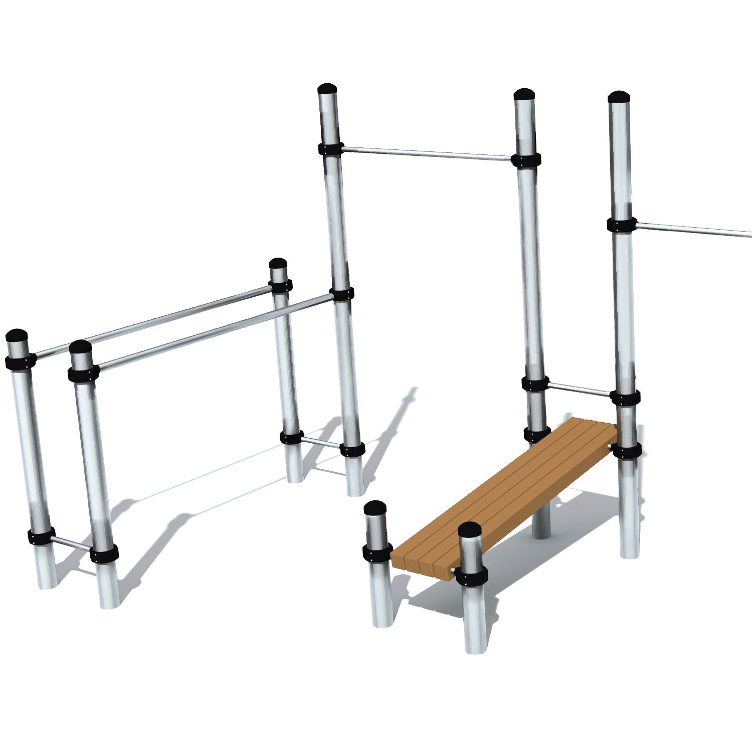 Neben unseren Calisthenics Basic Serie bieten wir Ihnen ein weiteres und breites Bewegungsangebot an. Die Calisthenics WRK Serie besteht aus 41 verschiedenen Modulen, welches Ihren Platz zu einem zielgerichteten Training fördert. Die Edelstahl Rundrohre, mit Kunststoffschellen als Verbindungselement, sind individuell gestaltbar und jederzeit auf Wunsch erweiterungsfähig.