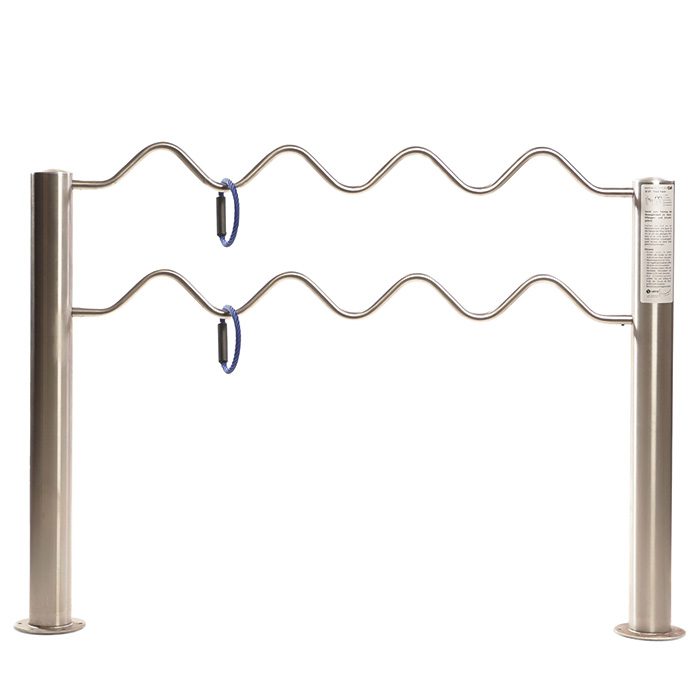 Nehmen Sie einen Ring und führen Sie ihn so um das geschwungene Rohr, dass er dieses nicht berührt. Für einen erhöhten Schwierigkeitsgrad können Sie beide Ringe gleichzeitig bewegen.